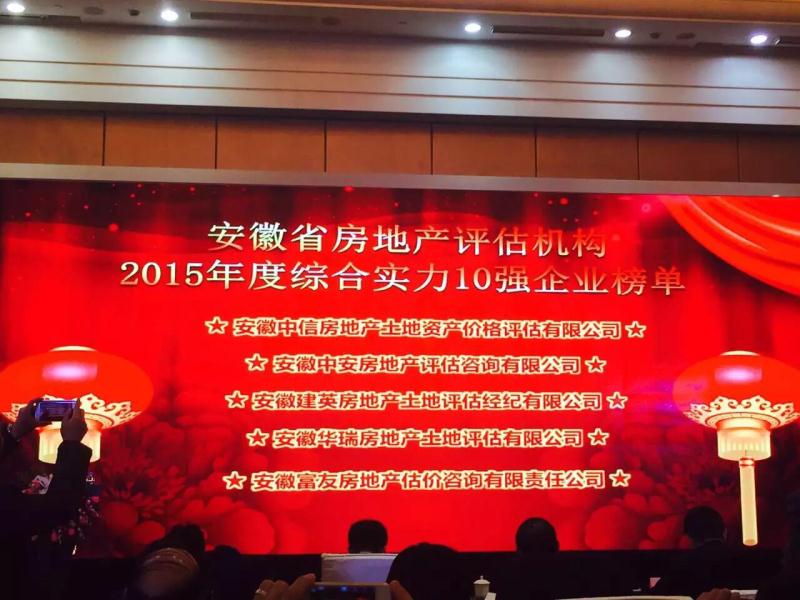 喜訊:安徽建英評估公司獲得“安徽省房地產(chǎn)評估機構(gòu)2015年度綜合實力十強企業(yè)”榜單排名進入前三甲!熱烈祝賀!