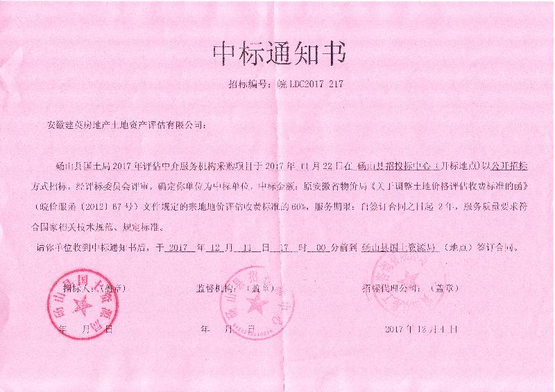 2017年11月份,公司中標碭山縣國土局2017年評估中介服務機構(gòu)采購項目,本次中標服務期限為2年。