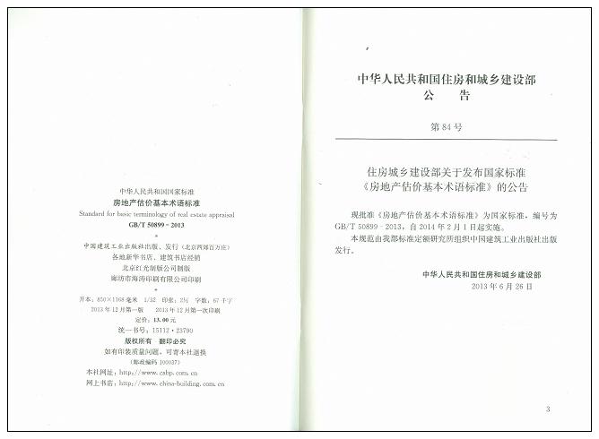 2013年6月26日,住房和城鄉(xiāng)建設(shè)部、國家質(zhì)量監(jiān)督檢驗(yàn)檢疫總局聯(lián)合發(fā)布了國家標(biāo)準(zhǔn)——《房地產(chǎn)估價基本術(shù)語標(biāo)準(zhǔn)》(GB/T 50899-2013),該標(biāo)準(zhǔn)將于2014年2月1日起實(shí)施。